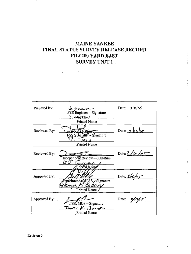 Get the free Maine Yankee Final Status Survey Release Record FR-0200 Yard East Survey Unit 1.