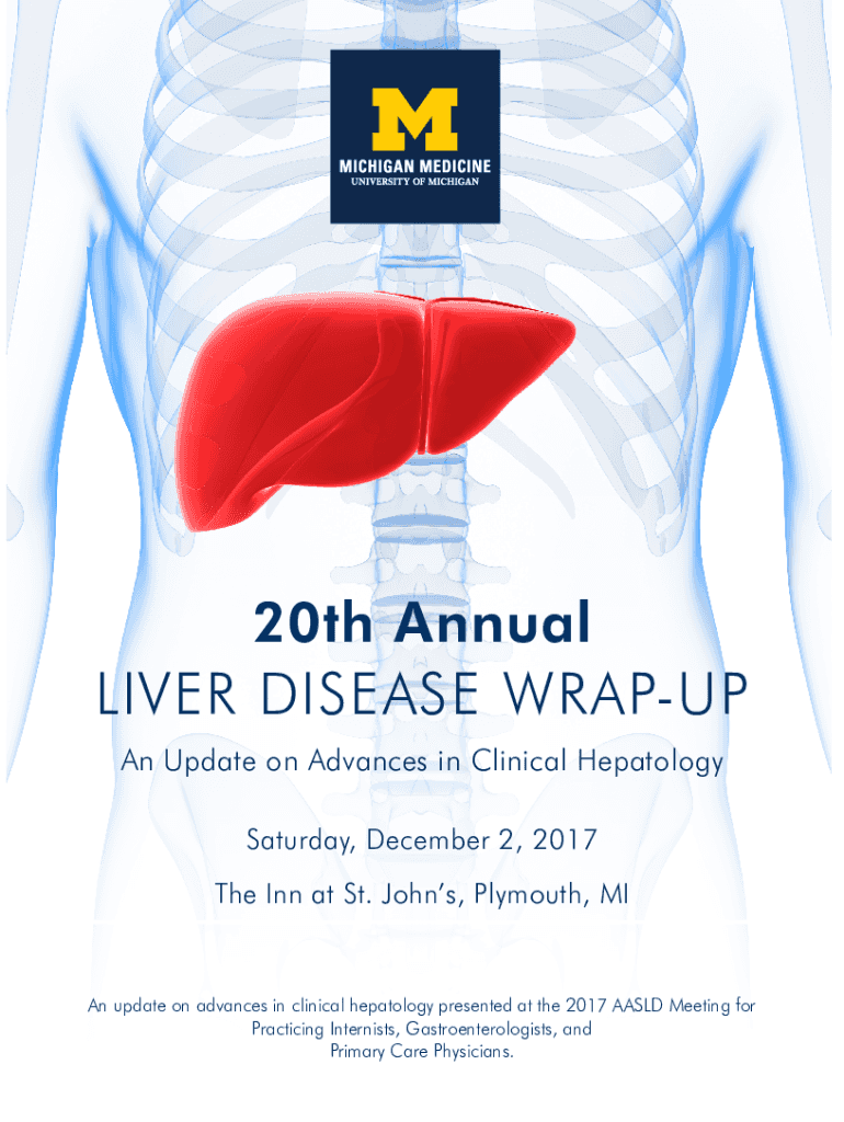 20th Annual LIVER DISEASE WRAP UP An Update on Advances in Clinical Hepatology Saturday, December 2, 2017, The Inn at St. Johns, Plymouth, Man update on advances in clinical hepatology presented at