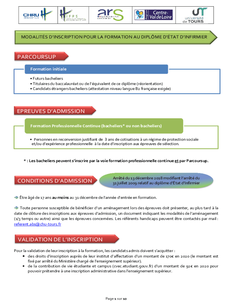 MODALITY INSCRIPTION POUR LA FORMATION AU DIP LME DAT DINFIRMIERPARCOURSUP Formation initial Future bachelors Titular Du baccalaureate of DE equivalent de CE diploma (orientation) Candidate strangers
