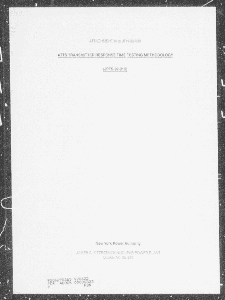 ., '. 4ATTACHMENT Ill to JPN 92030ATTS TRANSMITTER RESPONSE TIME TESTING METHODOLOGY(JETS 92 010) i. . T. New York Power Authority JAMES A. FITZPATRICK NUCLEAR POWER PLANT Docket No. 50333hkADOOg3.