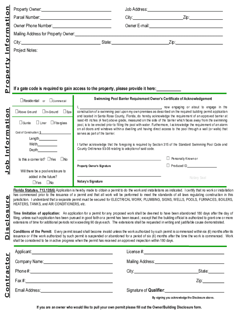 SANTA ROSA COUNTY DEVELOPMENT SERVICES 6051 Old Baghdad Highway, Suite 202 Milton, Florida 32583SUMMARIZED CHECK LIST FOR SUBMITTING POOL PERMIT APPLICATION 1. POOL PERMIT APPLICATION. A current Building