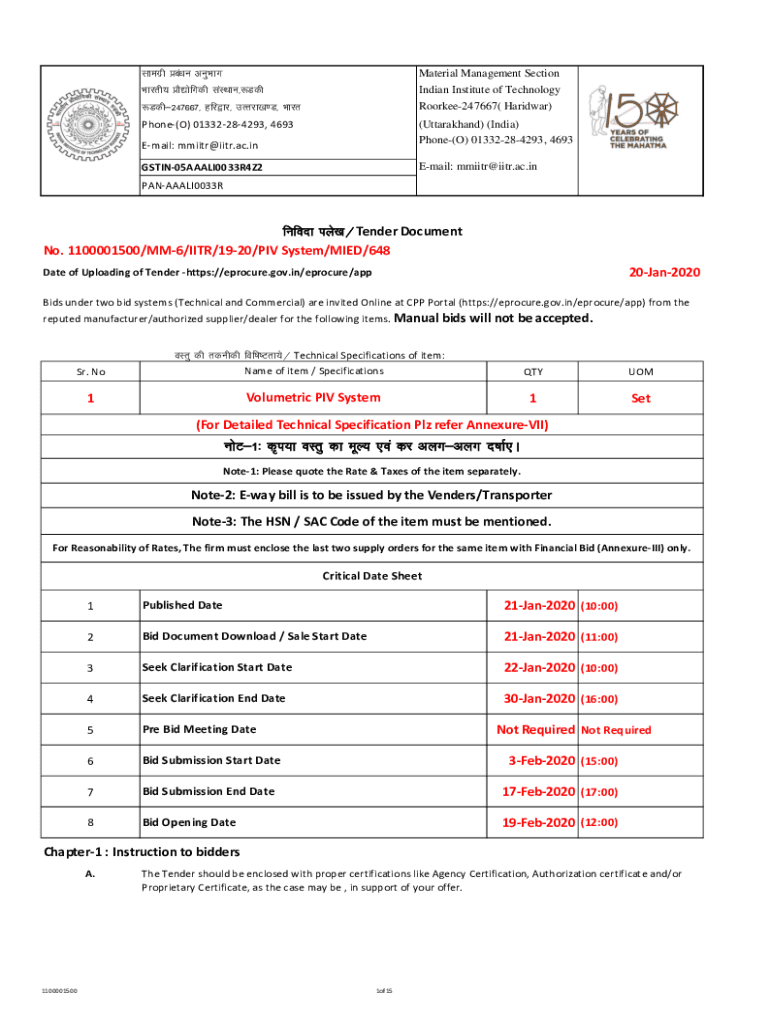 Lkkexzh Inca/KU vuqHkkx Hikers; ink| S sixth laLFkku]:Material Management Section Indian Institute of Technology Rookie Roorkee247667(Hardware):Mdh&247667] fake] mark[k. M] Hiker Phone(O) 01332284293,