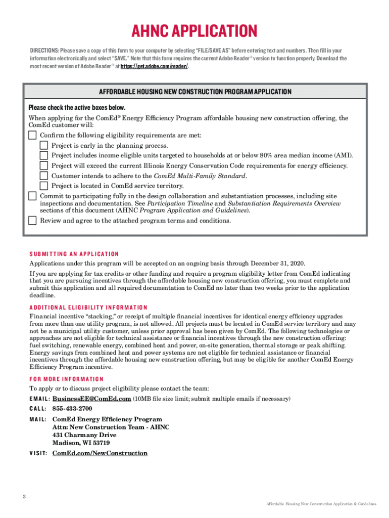 Get the free Affordable Housing New Construction Application - ComEd