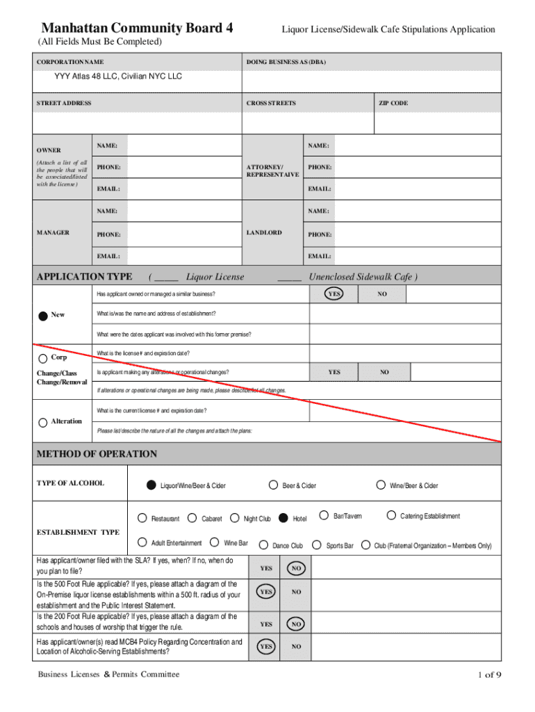Manhattan Community Board 4Liquor License/Sidewalk Café Stipulations Application(All Fields Must Be Completed) CORPORATION NAMING BUSINESS AS (DBA)YYY Atlas 48 LLC, Civilian NYC LLC, & YYY Atlas