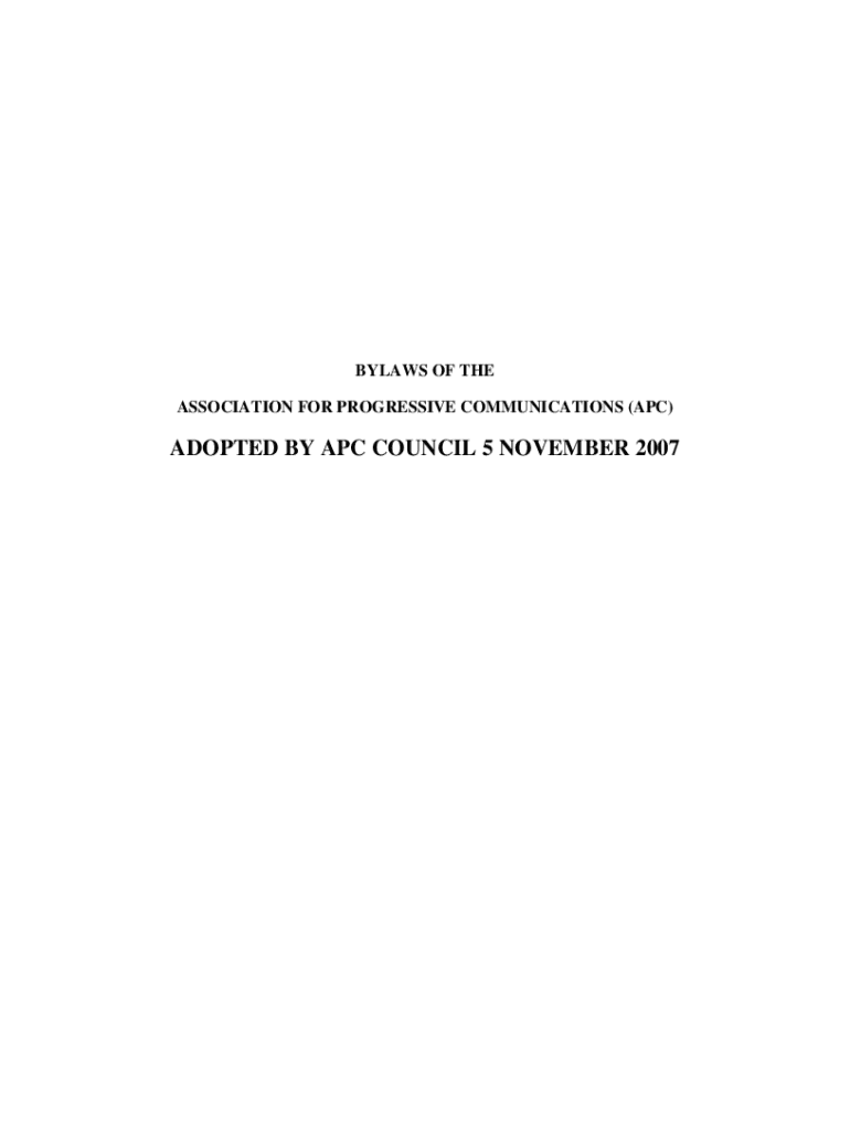 Get the free BYLAWS OF THE ASSOCIATION FOR PROGRESSIVE COMMUNICATIONS (APC)