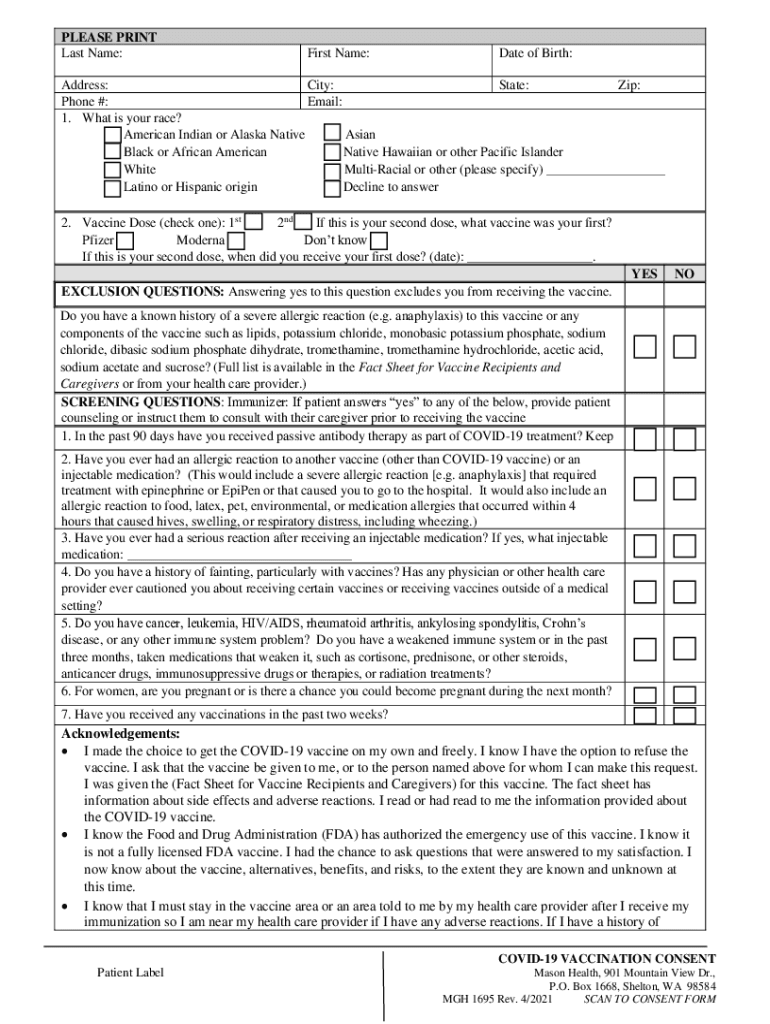 PLEASE PRINT Last Name:First Name:Date of Birth:Address: City: State: Zip: Phone #: Email: 1. What is your race? American Indian or Alaska Native Asian Black or African American Native Hawaiian or