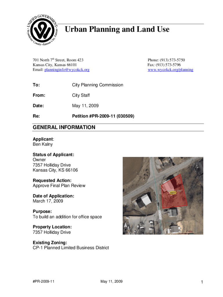 Urban Planning and Land Use701 North 7th Street, Room 423 Kansas City, Kansas 66101 Email: planninginfo@wycokck.orgPhone: (913) 5735750 Fax: (913) 5735796 www.wycokck.org/planningTo:City Planning