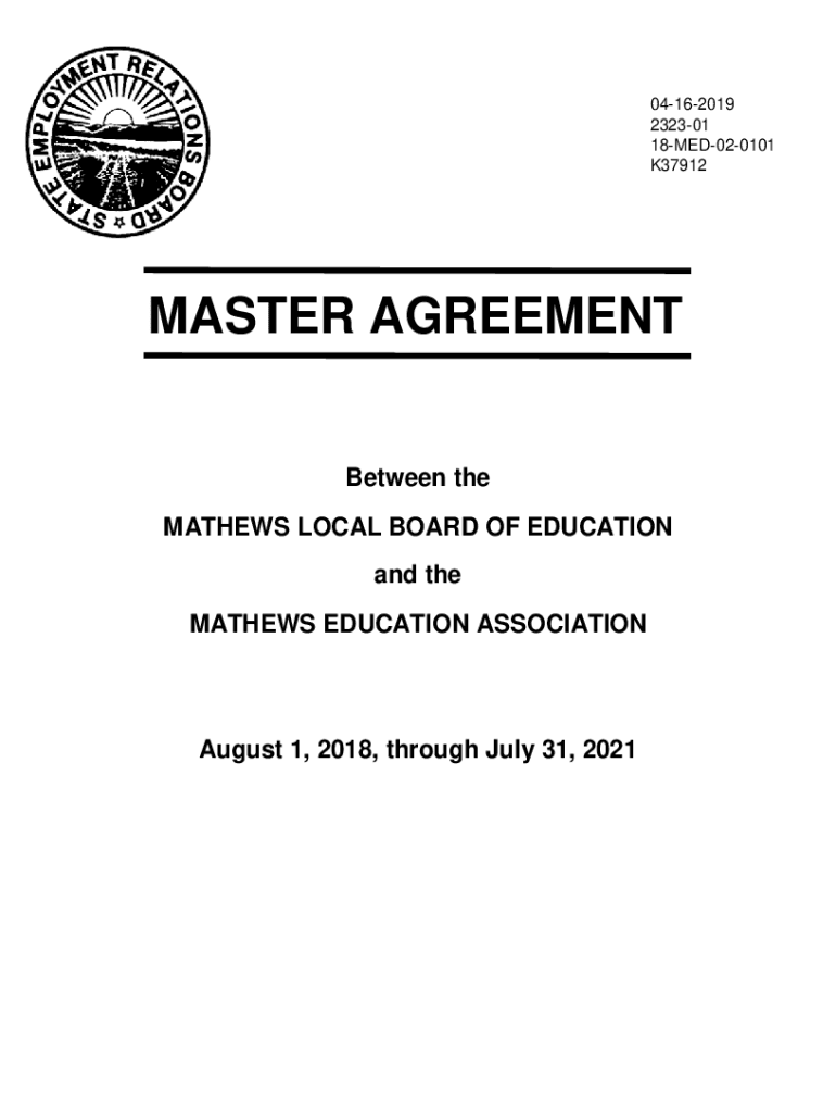 04162019 232301 18MED020101 K37912MASTER AGREEMENT Between the MATHEWS LOCAL BOARD OF EDUCATION and the MATHEWS EDUCATION ASSOCIATION August 1, 2018, through July 31, 2021TABLE OF CONTENTS PAGE PREAMBLE............................................................................................................................................