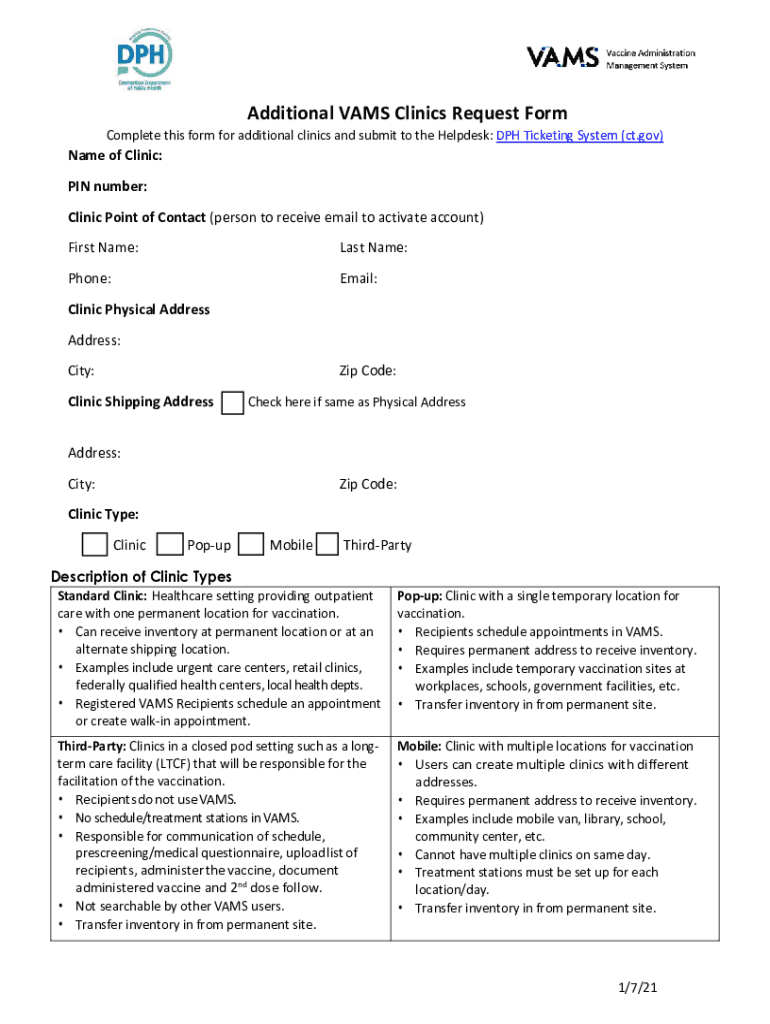 Get the free Additional VAMS Clinics Request Form - Connecticut