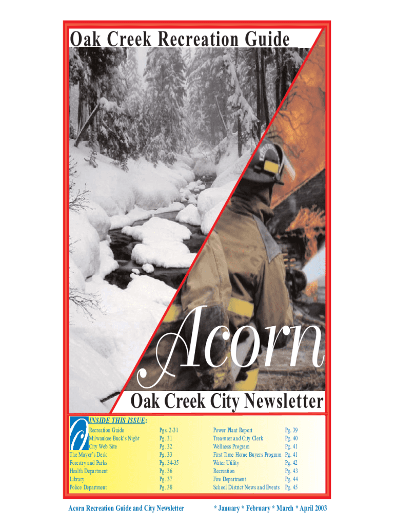 Oak Creek Recreation Guidebook Creek City Newsletter INSIDE THIS ISSUE: Recreation Guide Milwaukee Bucks Night City Website The Mayors Desk Forestry and Parks Health Department Library Police Departments.