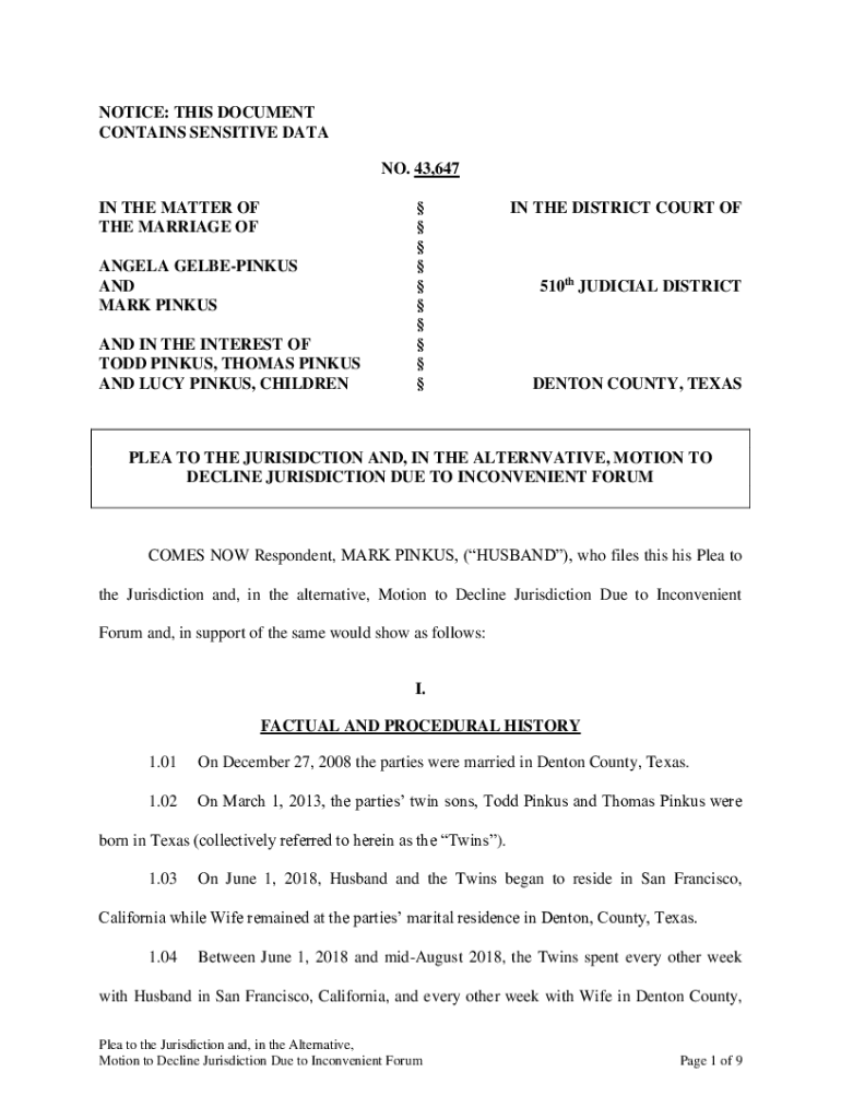 Get the free NOTICE: THIS DOCUMENT CONTAINS SENSITIVE DATA NO. 43,647 ...