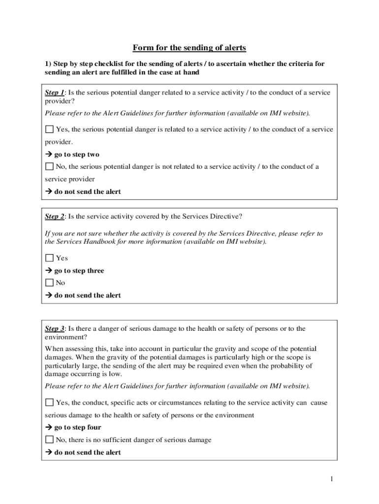 Form for the sending of alerts 1) Step by step checklist for the sending of alerts / to ascertain whether the criteria for sending an alert are fulfilled in the case at hand Step 1: Is the serious