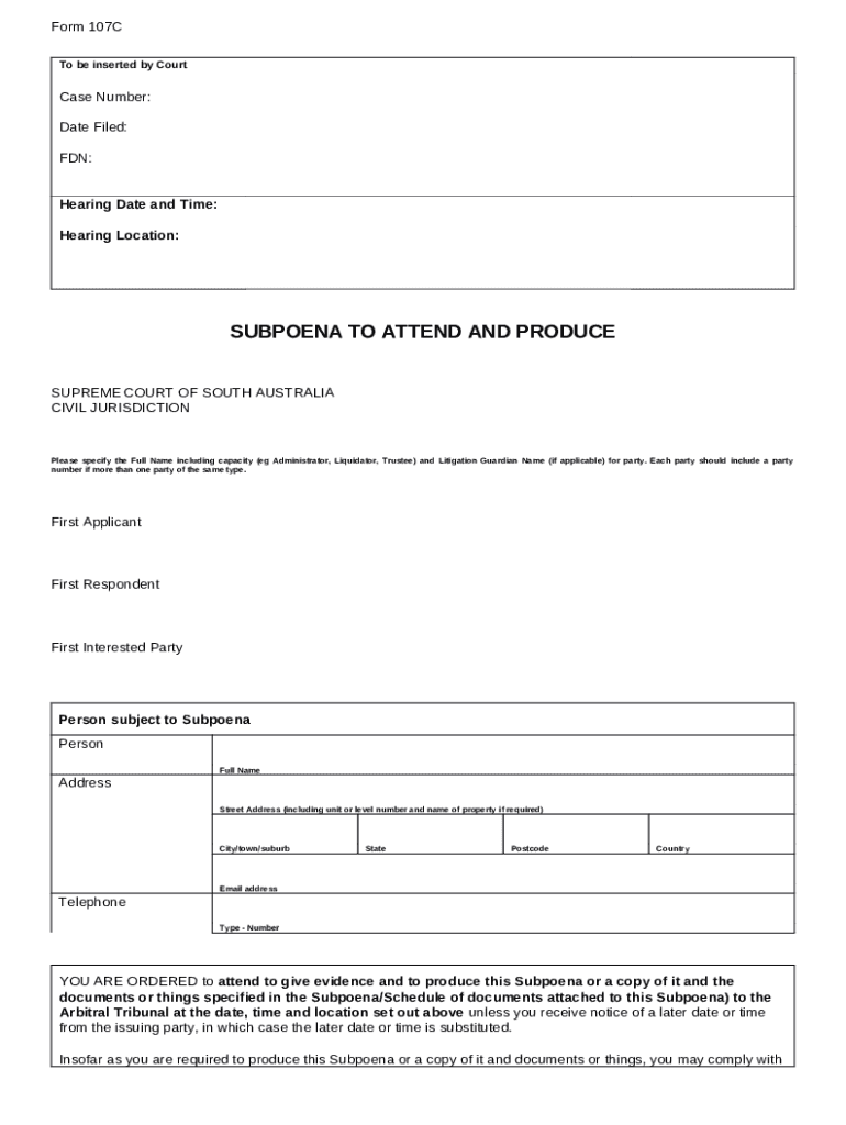 What is 107C Subpoena to Attend and Produce (Arbitration) Form?