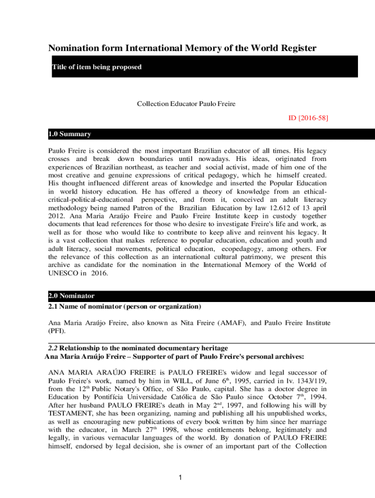 Get the free Nomination form International Memory of the World ... - UNESCO