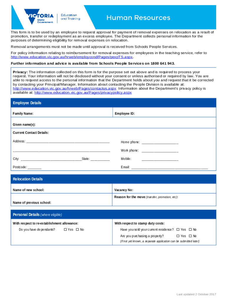 Application for payment of removal expenses on relocation - Teaching Service. Relocation Expense Request: frequently asked questions