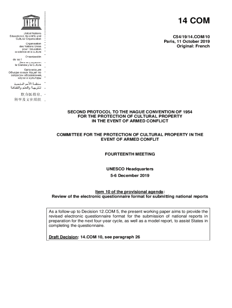 Get the free Comit pour la protection des biens culturels en cas de conflit arm. CLT-15/10.COM/CO...