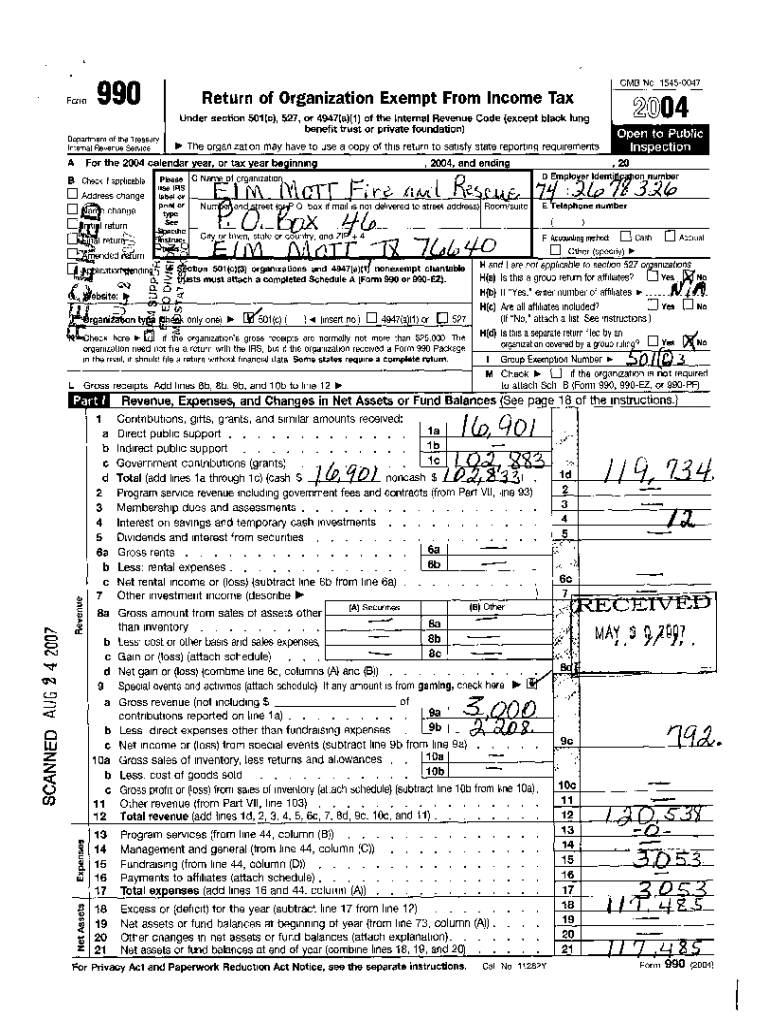 OMB No 15450047990FainReturn of Organization Exempt From Income Tax2004Under section 501(c), 527, or 4947(a)(1) of the Internal Revenue Code (except black lung benefit trust or private foundation)