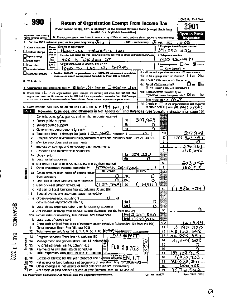 R “990FormReturn of Organization Exempt From Income TaxOepavrcn d my ivory KMA Revenue Santa A organization may have to use a copy of this realm to satisfy state repoint repuvemenFor the 2001 call
