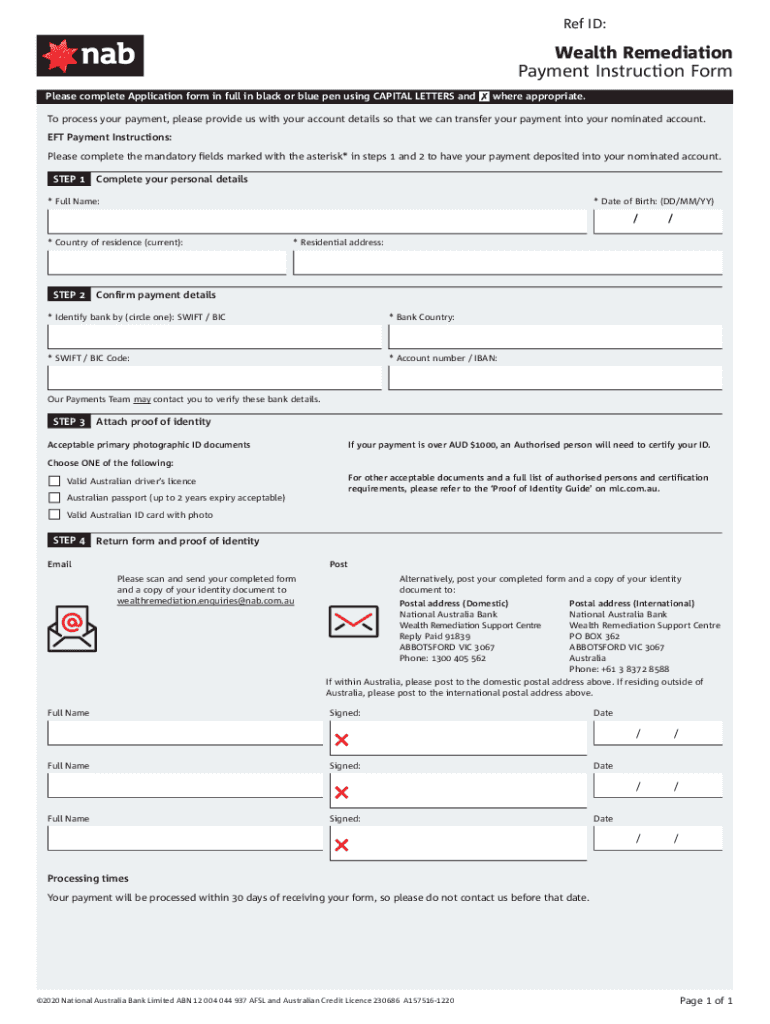 Ref ID:Wealth Remediation Payment Instruction Form Please complete Application form in full in black or blue pen using CAPITAL LETTERS anywhere appropriate. To process your payment, please provide