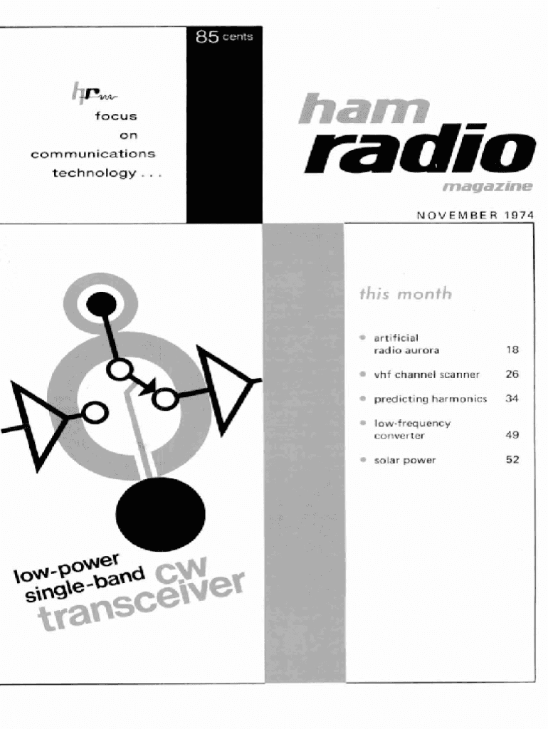 RR “OK focus on communications technology...radio pr 'RQ, TPN O V E M B E R 1974 artificial radio aurora18vhf channel scanner26predicting harmonics34lowfrequency converter49solar power52S W A AI,