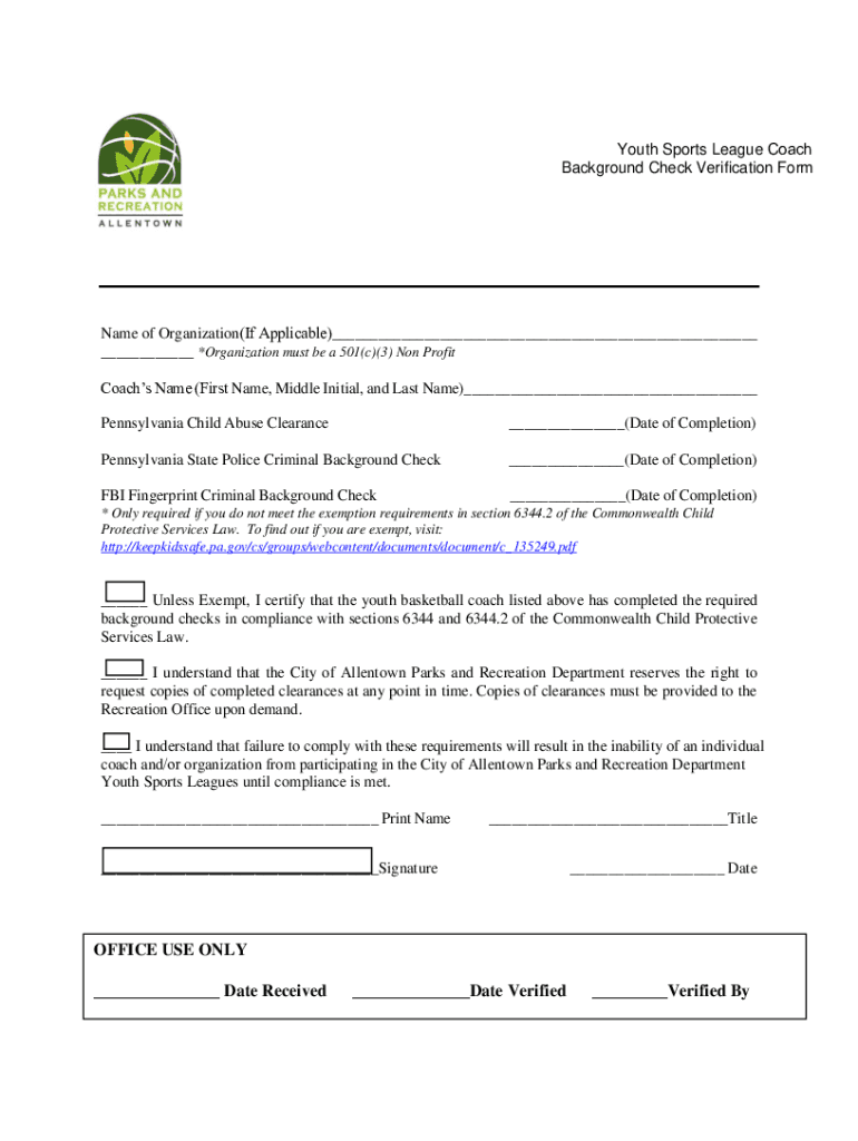 Get the free 2021 Youth Sports League Coach Background Check Verification ...