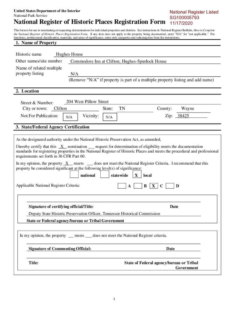 National Register Listed SG100005793 11/17/2020United States Department of the Interior National Park ServiceNational Register of Historic Places Registration Forms form is for use in nominating or