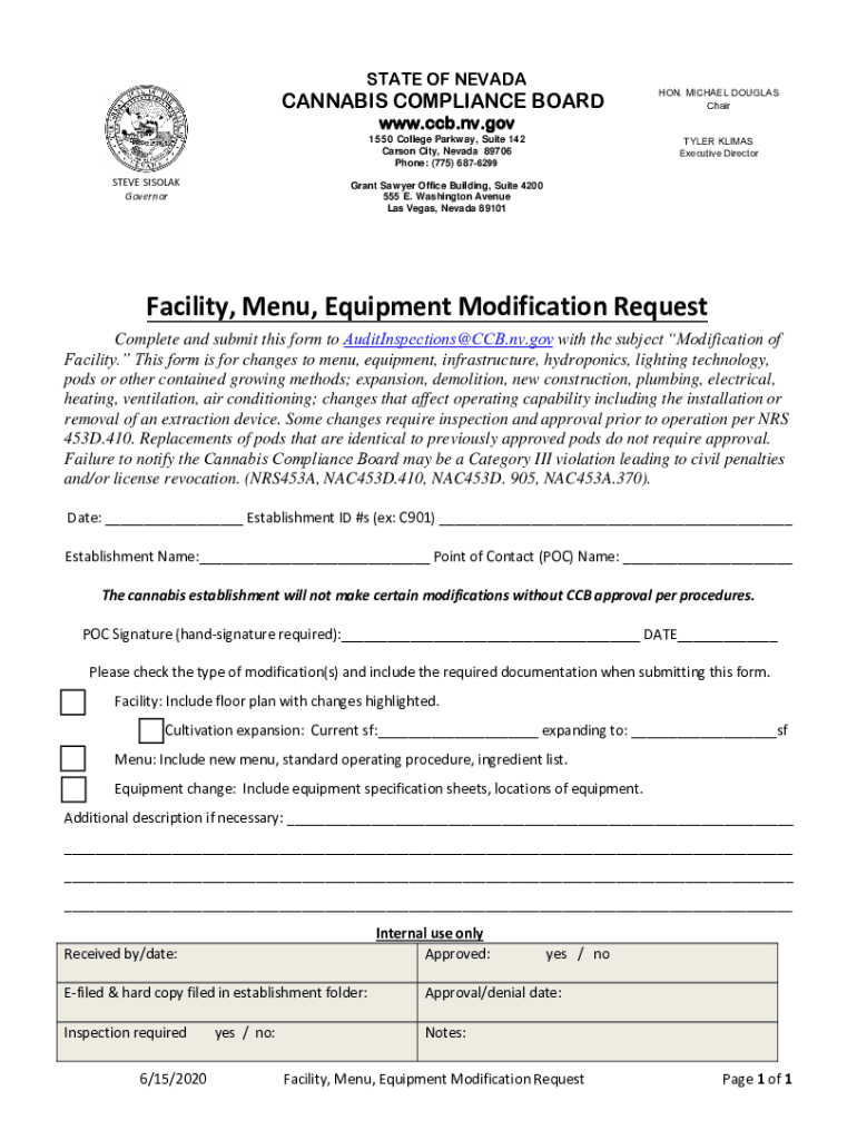 Get the free Facility, Menu, Equipment Modification Request - Nevada ...