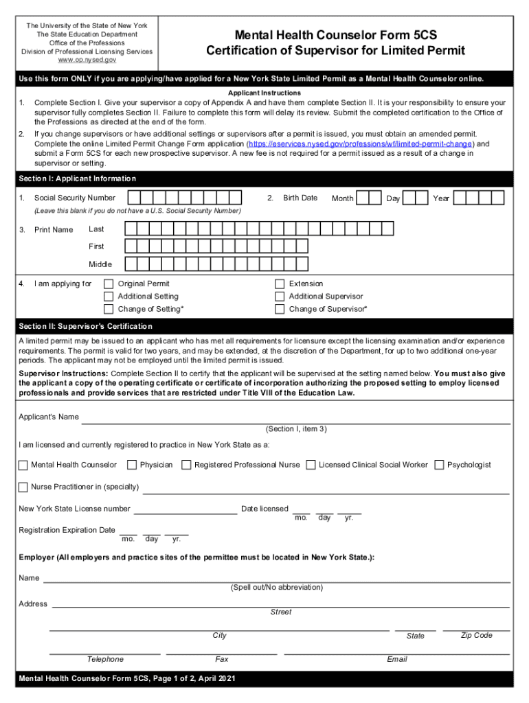 The University of the State of New York The State Education Department Office of the Professions Division of Professional Licensing Services www.op.nysed.govMental Health Counselor Form 5CS Certification