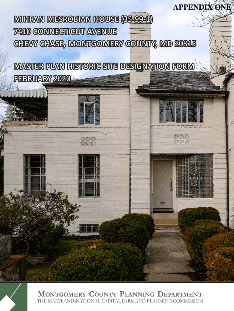 APPENDIX ONEmihran Serbian house (35991) 7410 Connecticut avenue Chevy Chase, Montgomery County, MD 20815 master plan historic site designation form February 2020MONTGOMERY COUNTY PLANNING DEPARTMENT