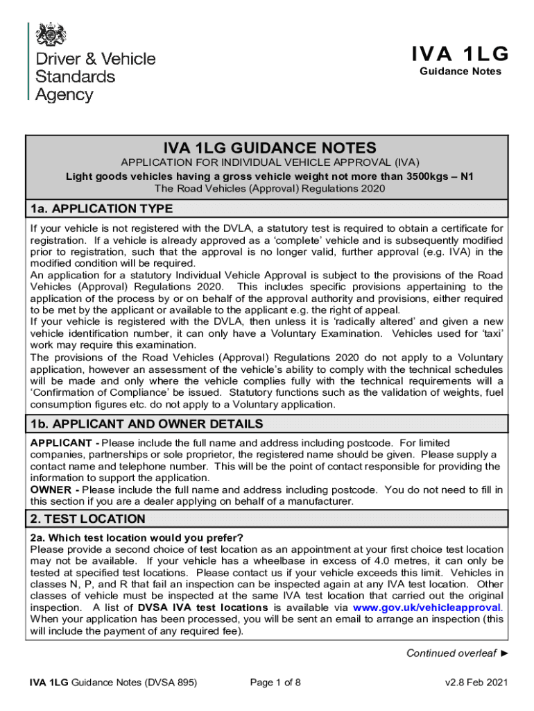 IVA 1LG Guidance Notes 1LG GUIDANCE NOTESAPPLICATION FOR INDIVIDUAL VEHICLE APPROVAL (IVA) Light goods vehicles having a gross vehicle weight not more than 3500kgs N1 The Road Vehicles (Approval)