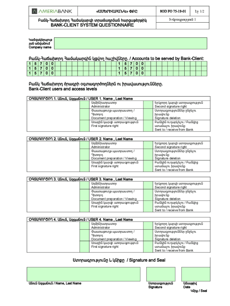Get the free APPLICATION FORM FOR BANK CLIENT