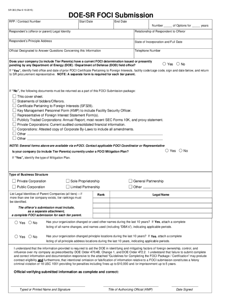 Reset Save to Disks 383 (Rev 6162015)DOES LOCI Submission RFP / Contract Number Start Attend Date Number of Options for yearsRespondents (offer or parent) Legal IdentityRelationship of Respondent