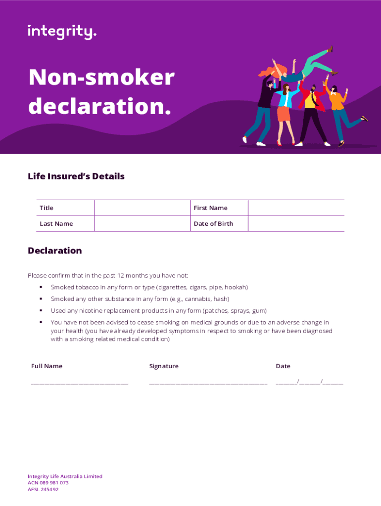 Non-Smoker Declaration - Integrity is not the form you're looking for?Search for another form here.