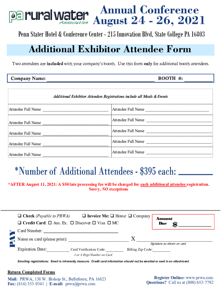 Annual Conference August 24 26, 2021 Penn Stater Hotel & Conference Center 215 Innovation Blvd, State College PA 16803Additional Exhibitor Attendee Form Two attendees are included with your companies