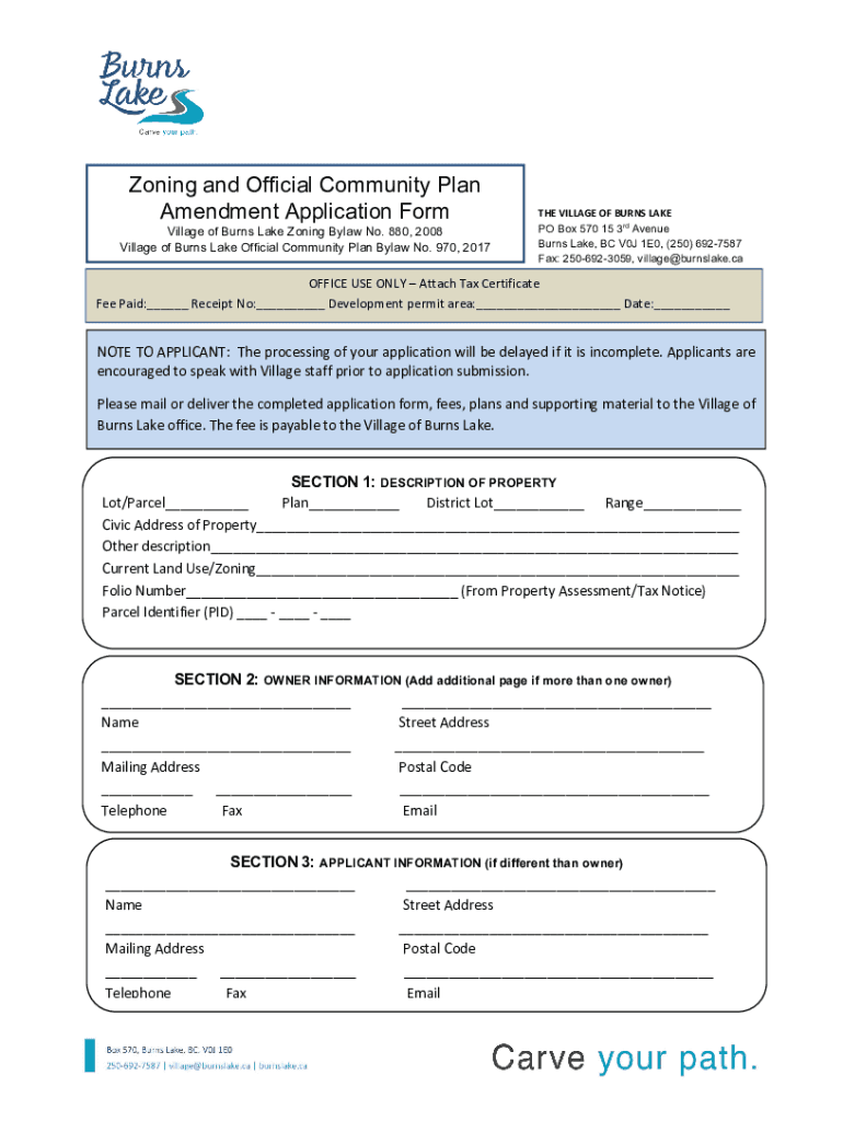 Zoning and Official Community Plan Amendment Application Farmville of Burns Lake Zoning Bylaw No. 880, 2008 Village of Burns Lake Official Community Plan Bylaw No. 970, 2017THE VILLAGE OF BURNS LAKE