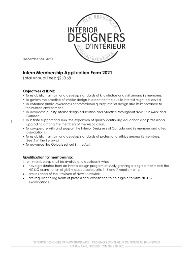 December 30, 2020Intern Membership Application Form 2021 Total Annual Fees: $250.58 Objectives of DNB:1 To establish, maintain and develop standards of knowledge and skill among its members. To govern