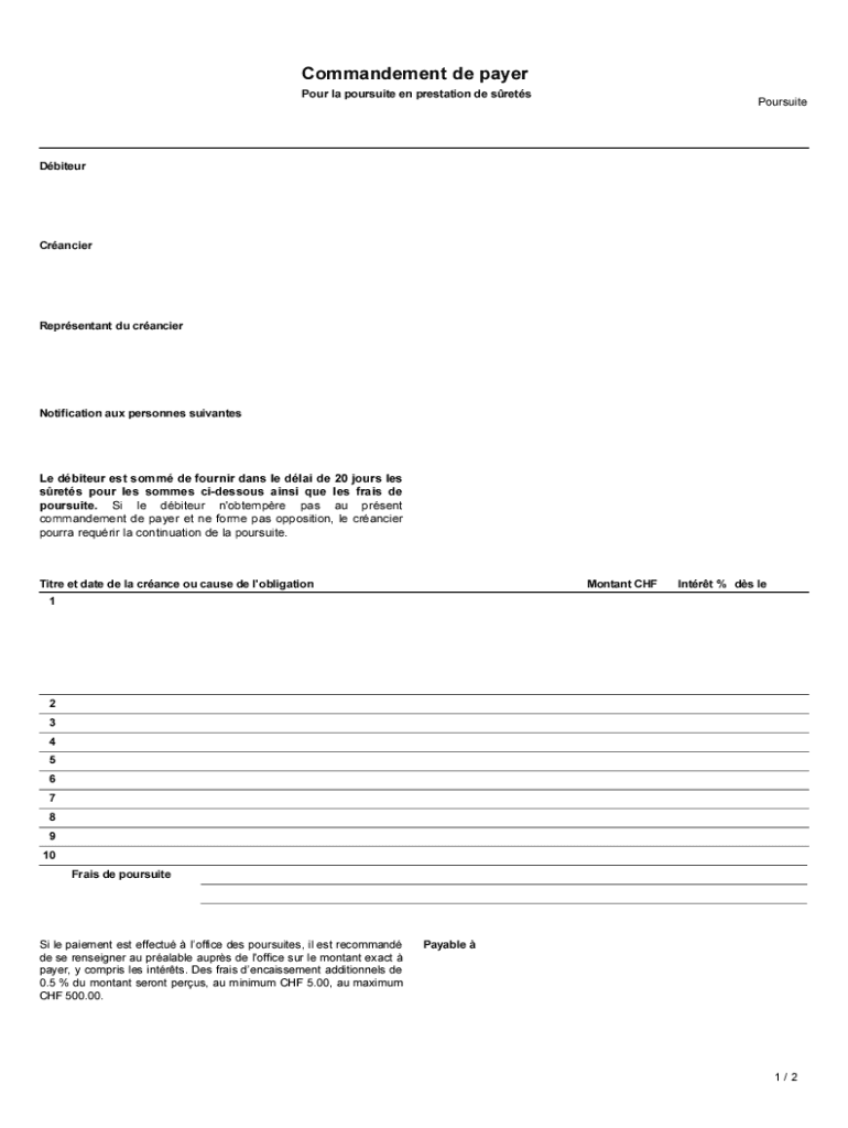 Commandment DE payer Pour la pour suite en prestation de sretsPoursuiteDbiteurCrancierReprsentant Du crancierNotification aux personnel suivantesLe biter est some de Fournier days LE DLA de 20 hours