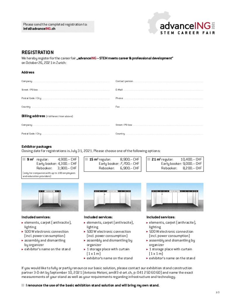 Please send the completed registration to: info advancing. Registration We hereby register for the career fair advancing STEM meets career & professional development on October 26, 2021, in Zurich: