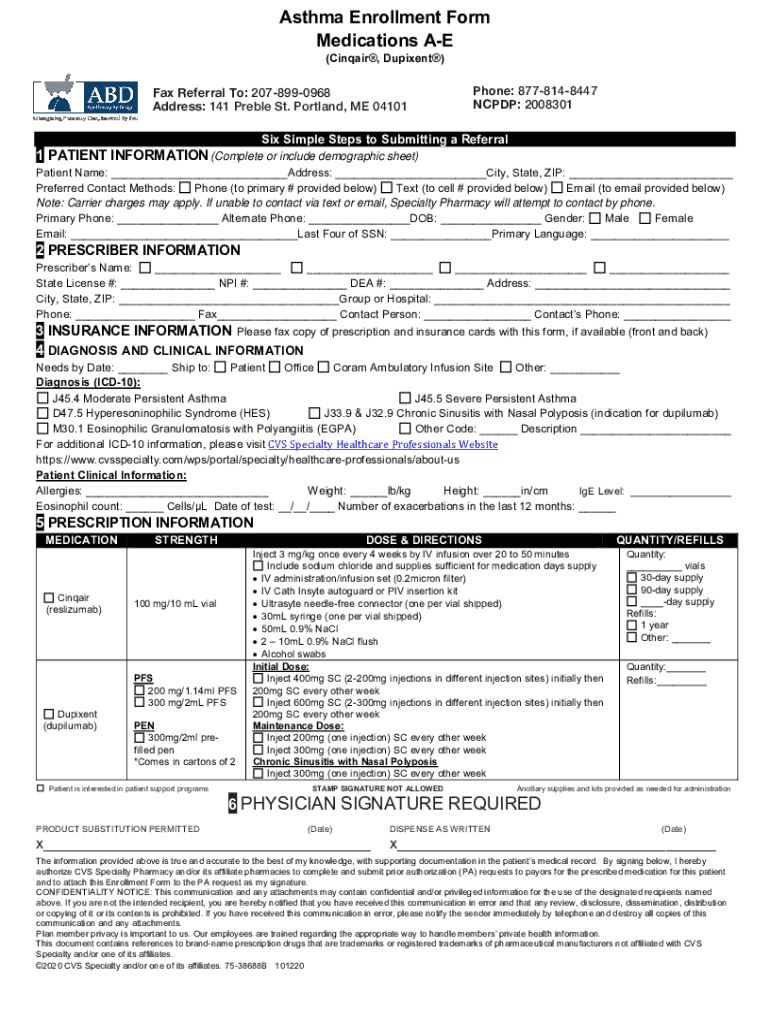 Asthma Enrollment Form Medications AE (Linear, DuPont)Fax Referral To: 2078990968 Address: 141 Treble St. Portland, ME 04101Phone: 8778148447 CPDP: 2008301Six Simple Steps to Submitting a Referral1
