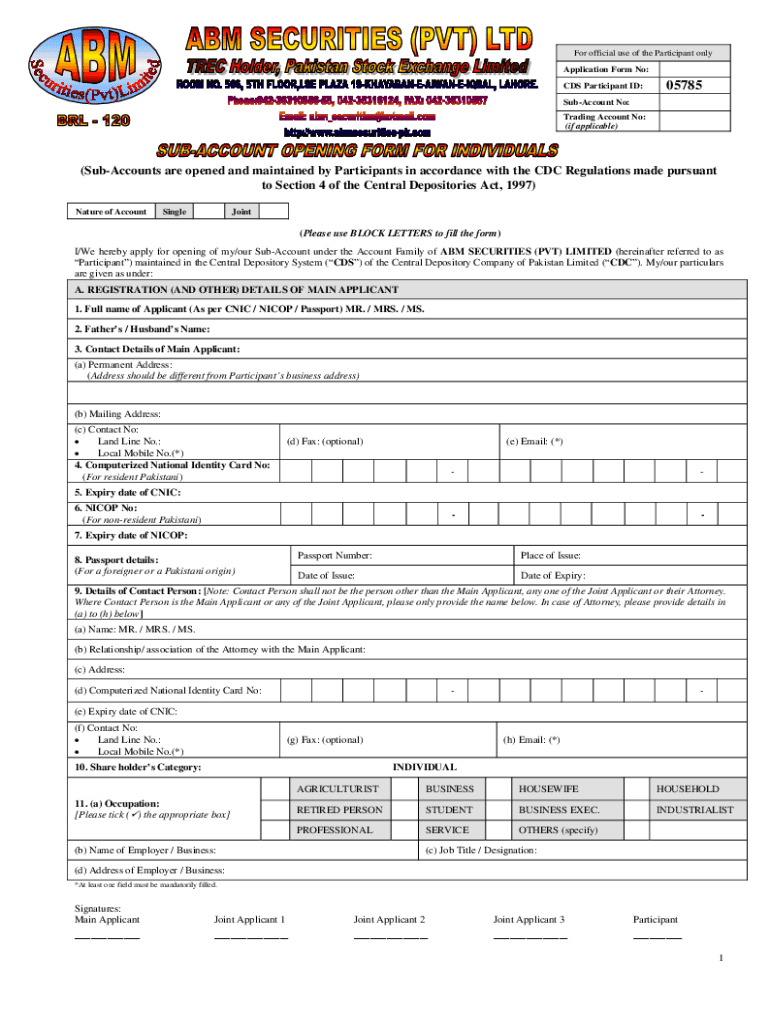 For official use of the Participant only Application Form No:[Participant Name]CDS Participant ID:05785SubAccount No:[Participant Address]Trading Account No: (if applicable)(SubAccounts are opened