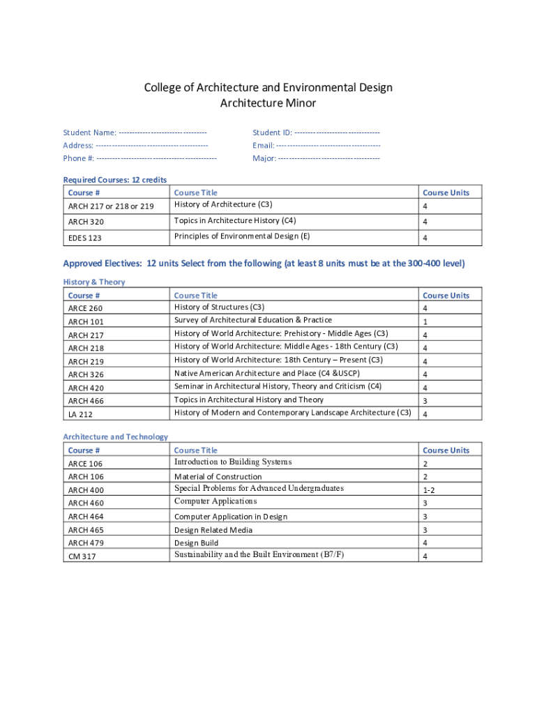 Get the free Architecture minor form.docx