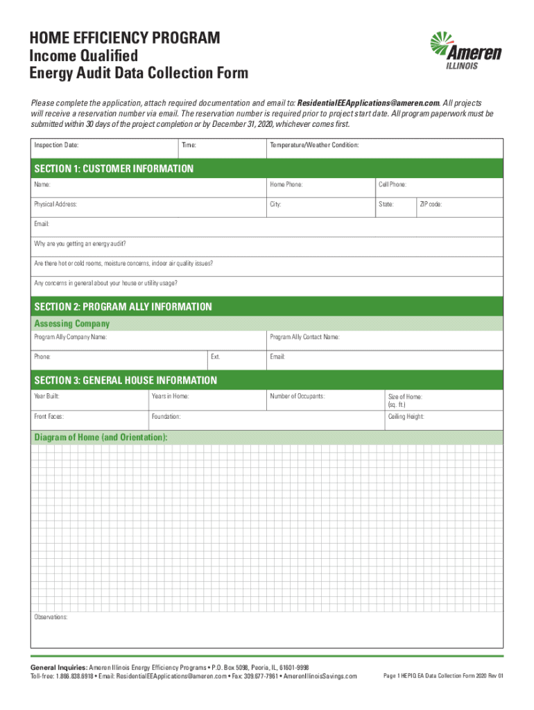 HOME EFFICIENCY PROGRAM Income Qualified Energy Audit Data Collection Form Please complete the application, attach required documentation and email to: ResidentialEEApplications@ameren.com. All projects