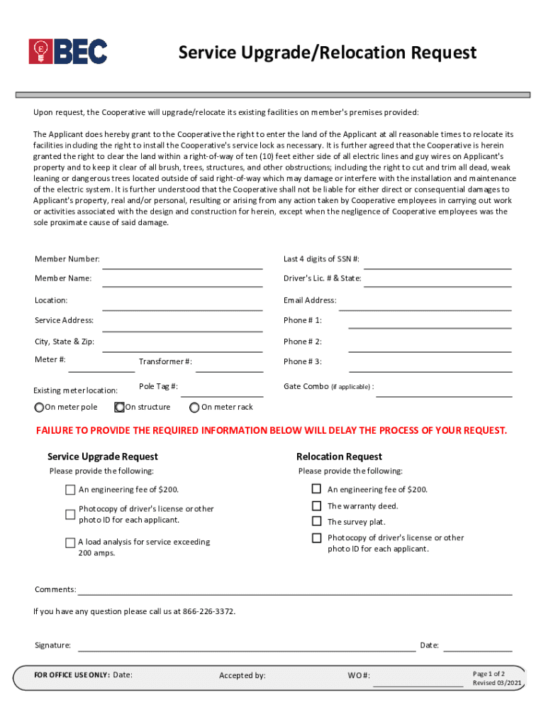 Get the free Service Upgrade/Relocation Request - Bandera Electric ...