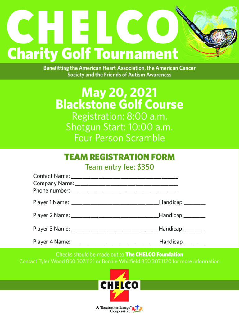 Charity Golf Tournament Benefitting the American Heart Association, the American Cancer Society and the Friends of Autism Awareness May 20, 2021, Blackstone Golf Course Registration: 8:00 a.m. Shotgun