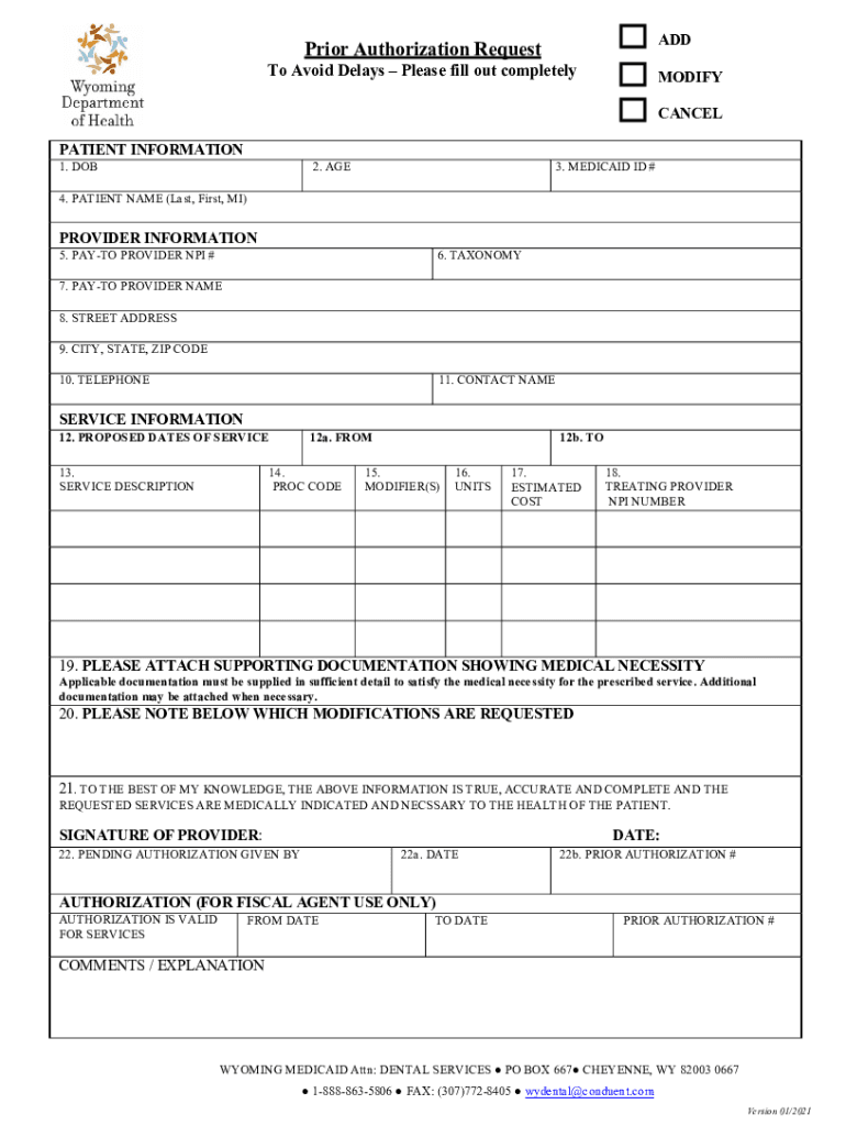 Instructions for completing the Medicaid Prior Authorization for Dental ServicesCompleting the Medicaid Prior Authorization Form for Medical Services *Denotes a Required Field NOTE: Is this an Add,