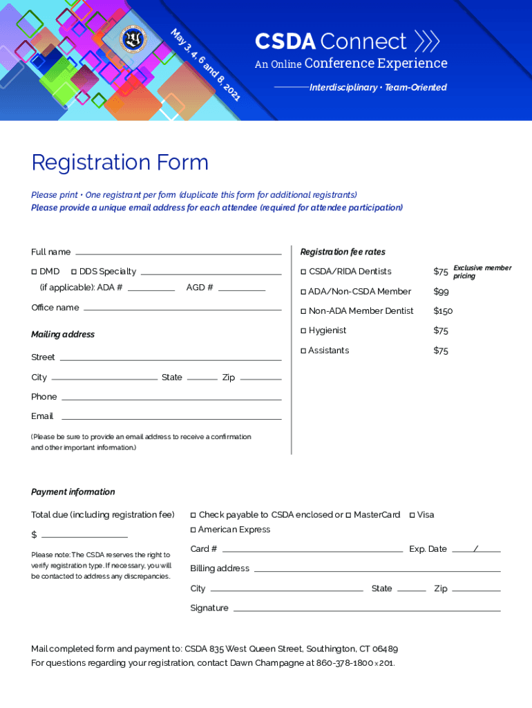 An MC SDA Connect3, 4,An Online Conference6 d anExperience2 8, 1 02Interdisciplinary TeamOrientedRegistration Form Please print One registrant per form (duplicate this form for additional registrants)