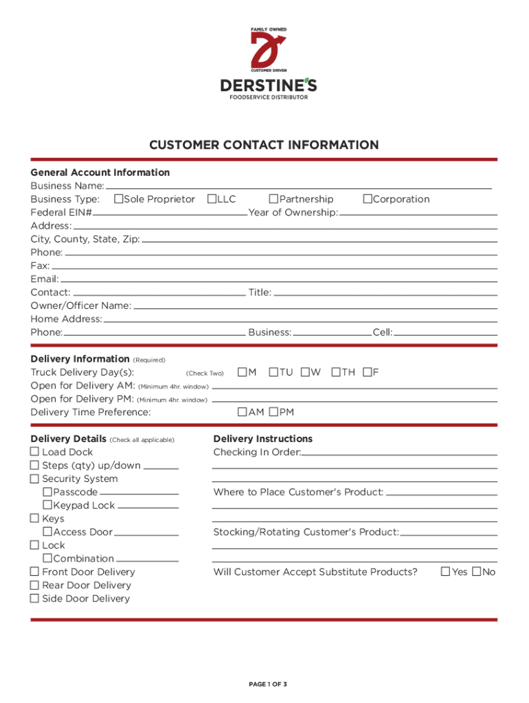 CUSTOMER CONTACT INFORMATION General Account Information Business Name: Business Type: Sole Proprietor Federal EIN# Address: City, County, State, Zip: Phone: Fax: Email: Contact: Owner/Officer Name: