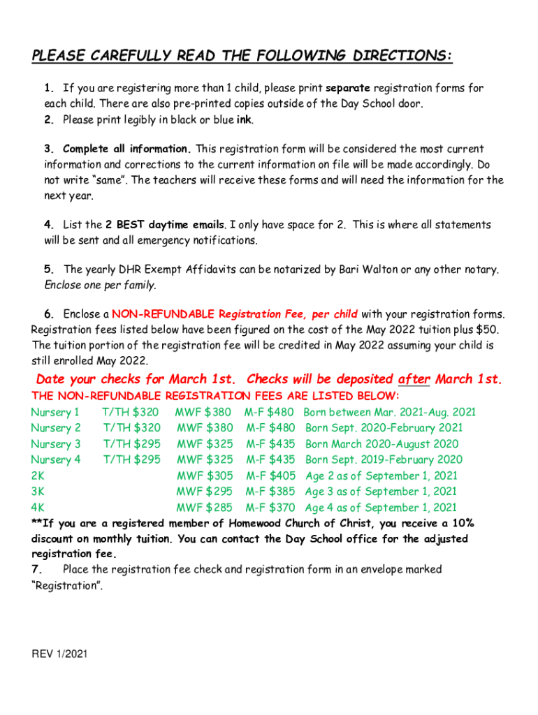 PLEASE CAREFULLY READ THE FOLLOWING DIRECTIONS: 1. If you are registering more than 1 child, please print separate registration forms for each child. There are also preprinted copies outside the Day