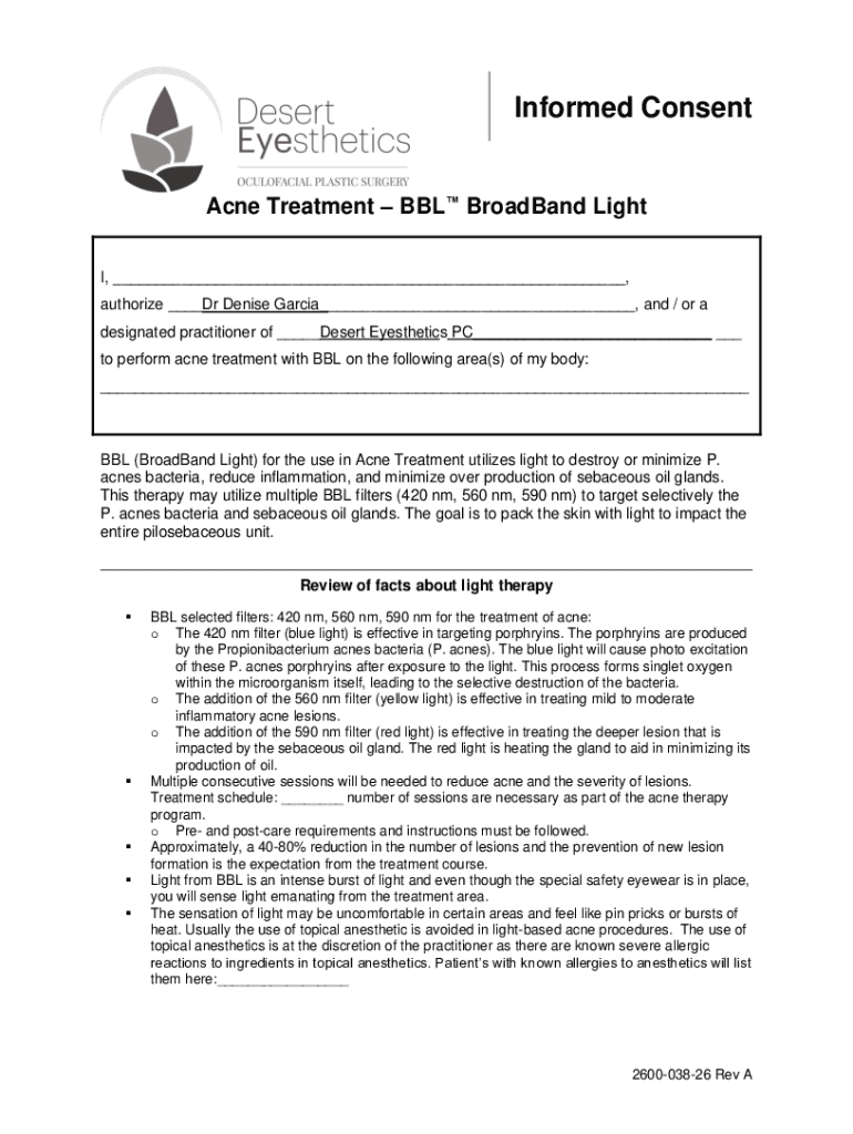 Dr. Laser Practitioner The Best Laser Office 1234 Your Street City, State 22222Informed Constance Treatment BBL Broadband Light I, authorize Dr Denise Garcia, and / or a designated practitioner of