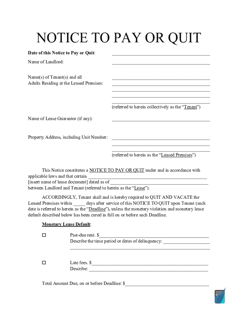 Pay Or Quit Notice is not the form you're looking for?Search for another form here.